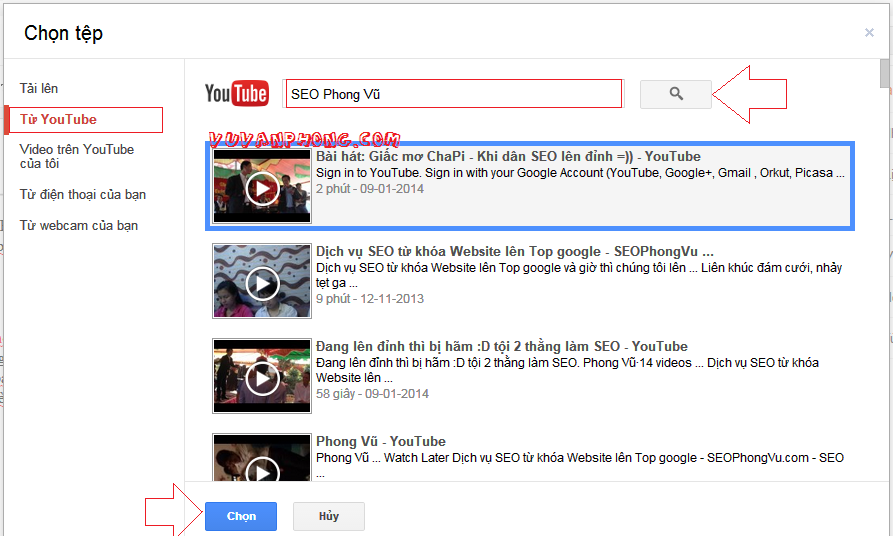 Cũng có những lựa chọn cho bạn như bạn chọn tải Videos lên từ máy tính, đưa videos từ Youtube,...